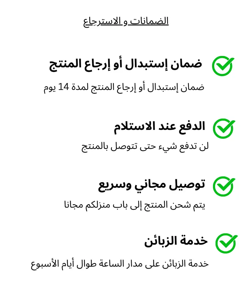 ![]() طلال الراشد ⭐ ⭐⭐⭐⭐"ما شاء الله، كل شيء تمام. من أول ما طلبت إلى ما استلمت، ما واجهت أي مشكلة. المتجر موثوق والخدمة ممتازة." |
